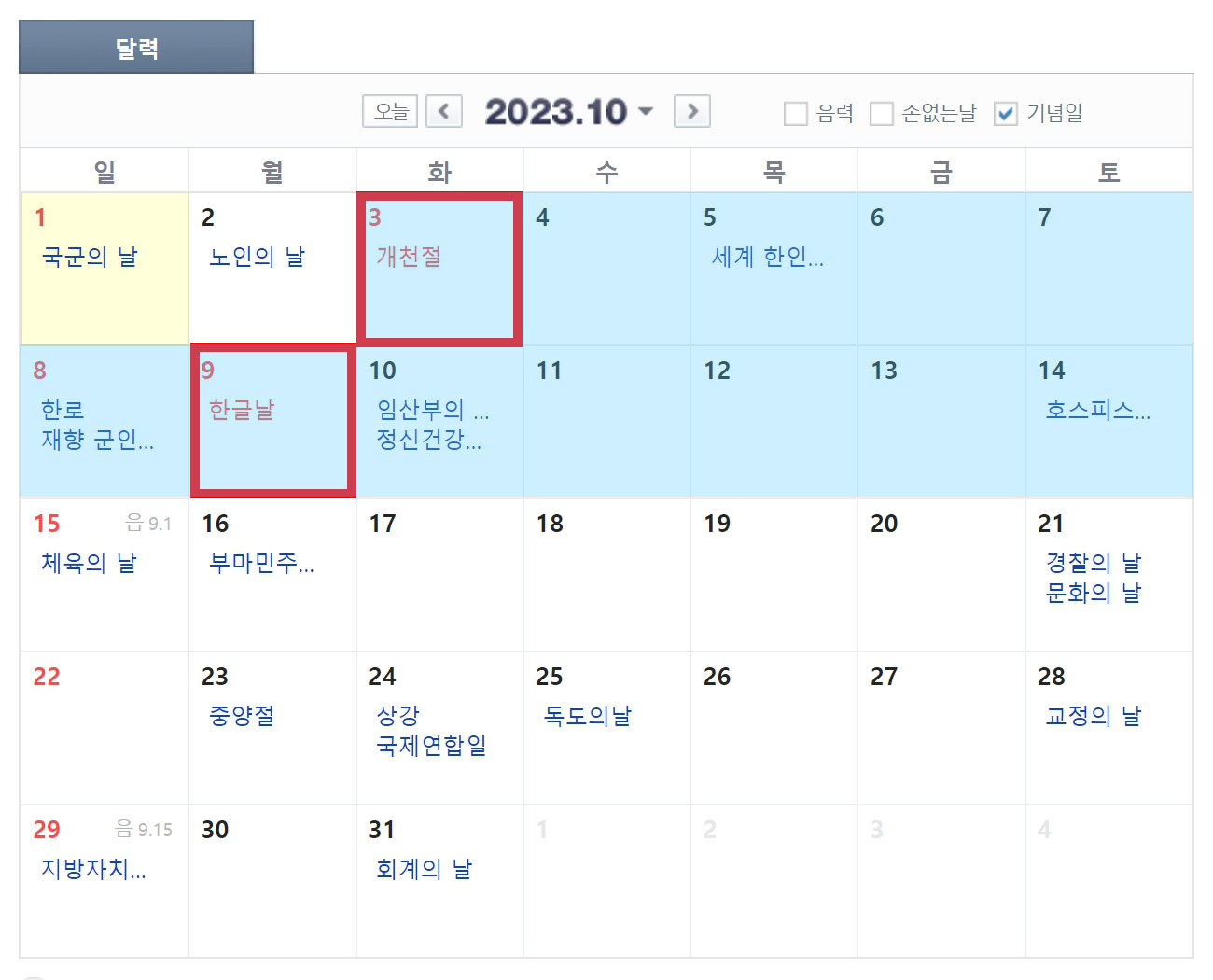 눈치 보지 말고 추석과 개천절, 한글날까지 알차게 최대 7일 내봅시다.