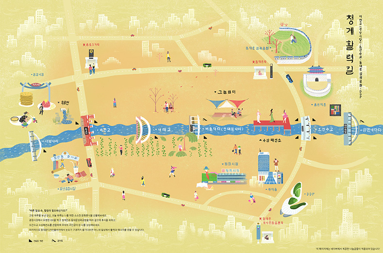 청계천은 서울의 걷기 좋은 길 중에 하나인데요. 인근지역 시민들과 주변 직장인들에게 휴식공간으로 많은 사랑을 받고 있는 곳입니다